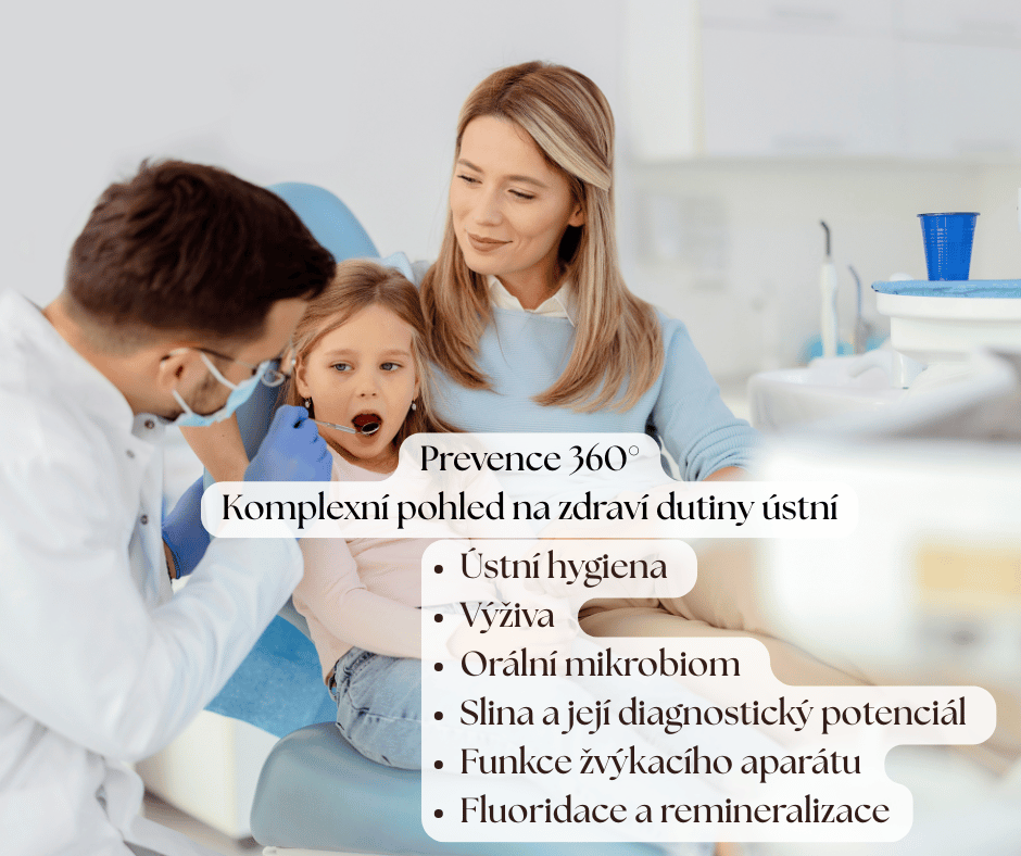 Koncept Prevence 360° představuje ucelený přístup ke zdraví dutiny ústní, který propojuje různé oblasti – od hygieny přes výživu až po funkci žvýkacího systému.